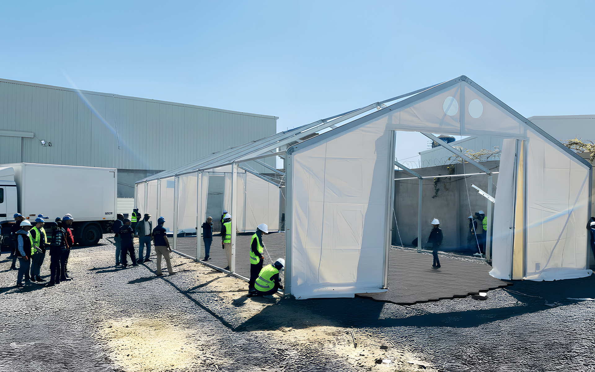 Protection Floor Tiles replace heavy concrete in humanitarian logistics and field operations. This unique, modular floor system is designed for flexibility, speed, and strength – ideal for mobile hospitals, emergency tents, and logistics centers.